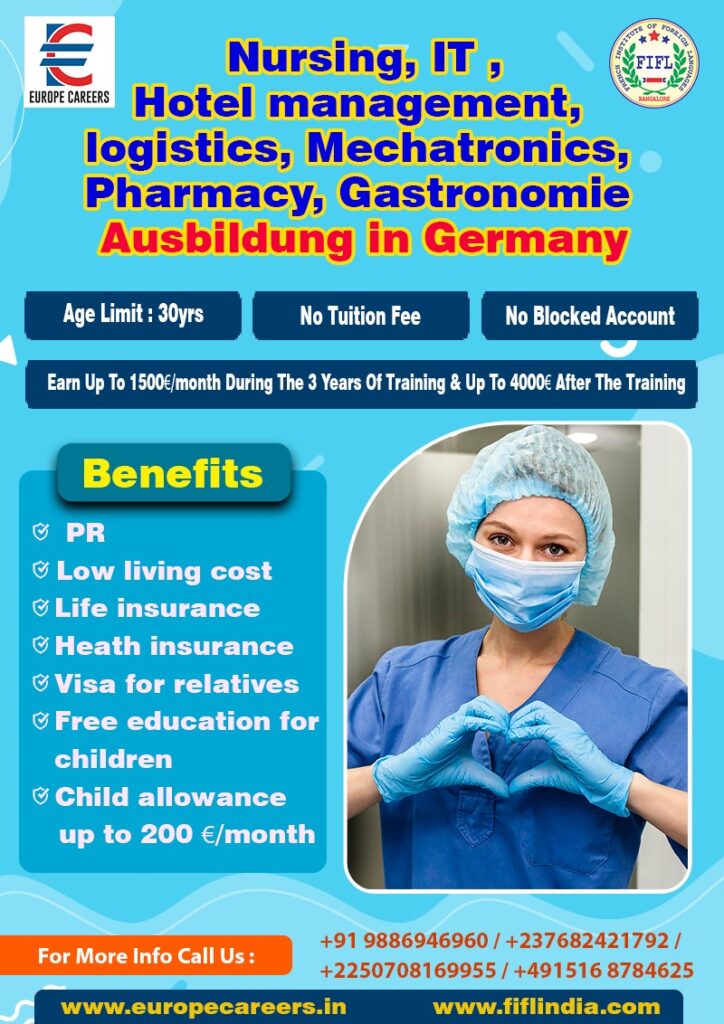 Europe careers is an international medical firm in Germany, in the city of HANOVER recruting medical doctors and nurses for German hospitals helps students do vocational training programs of Nursing, Hotel Managment, IT, Gastronomy, Mechatronics, Logistics in German.